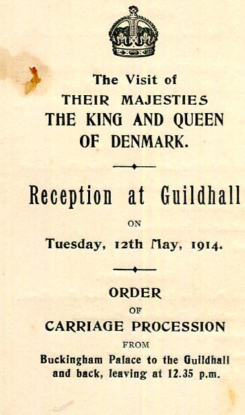 CIWL Royal Train King & Queen Of Denmark London Reception At Guilhall Order Of Carriage Procession 1914 Front