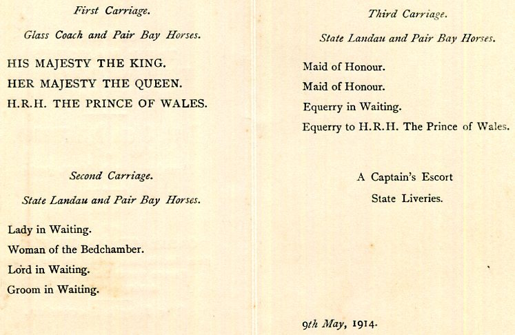 CIWL Royal Train King & Queen Of Denmark London Reception At Guilhall Order Of Carriage Procession 1914 Back