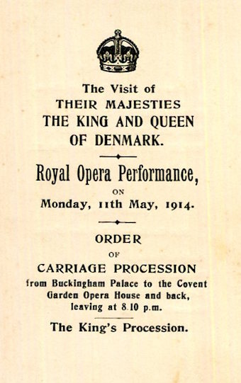 CIWL Royal Train King & Queen Of Denmark London Royal Opera Performance Order Of Carriage Procession 1914 Front