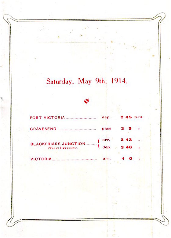 CIWL Royal Train King & Queen Of Denmark Arrival In London Brochure Order Of Carriage Procession 1914 Back