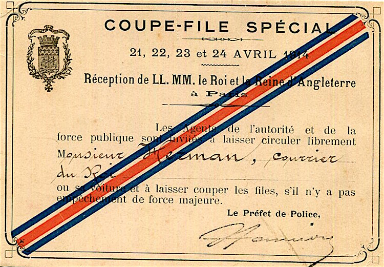 CIWL Royal Train King & Queen Of England Pass For Reception In Paris 1914