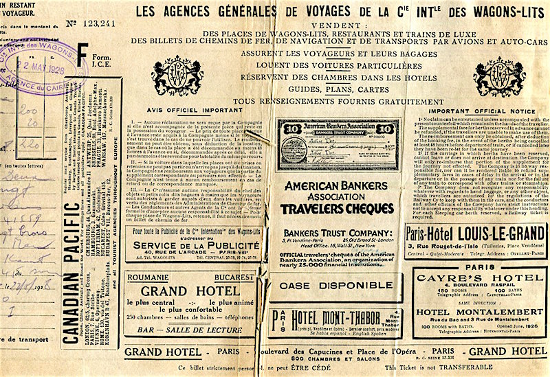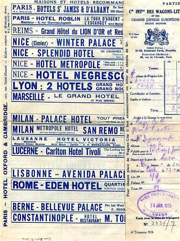 CIWL Egyptian Railroads Luxor Ticket Receipt 1925