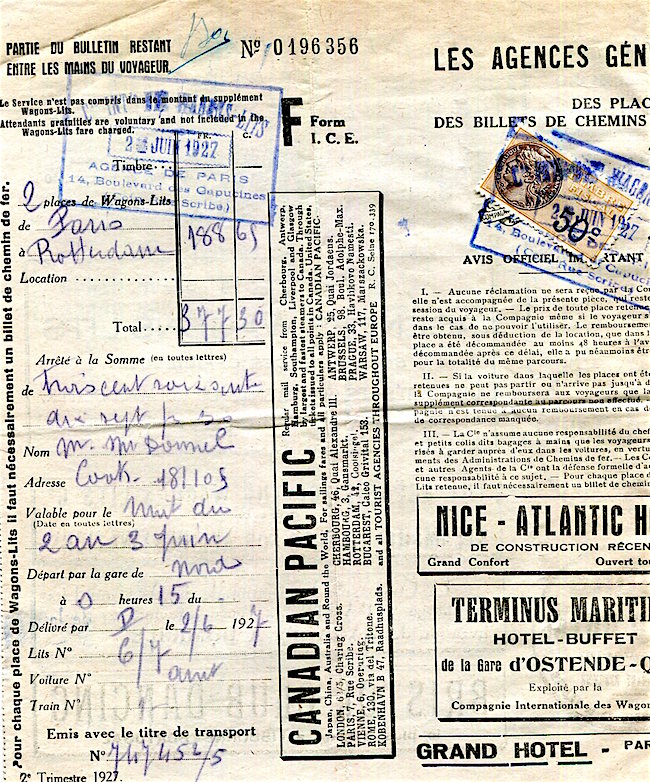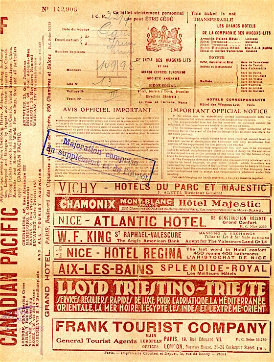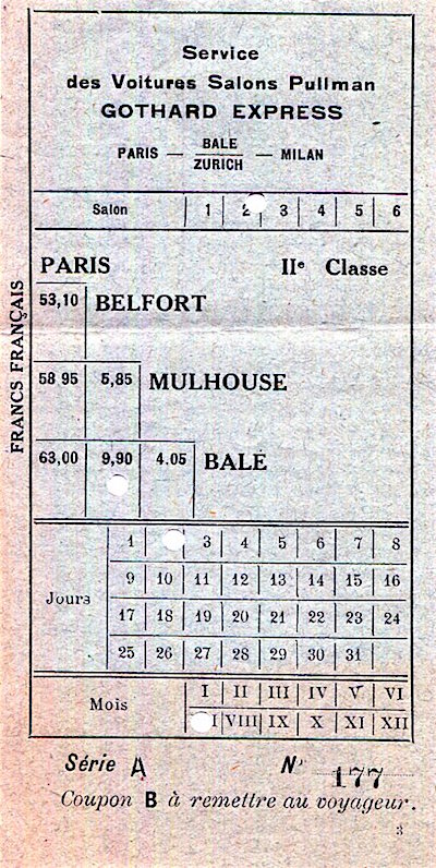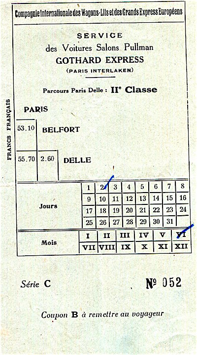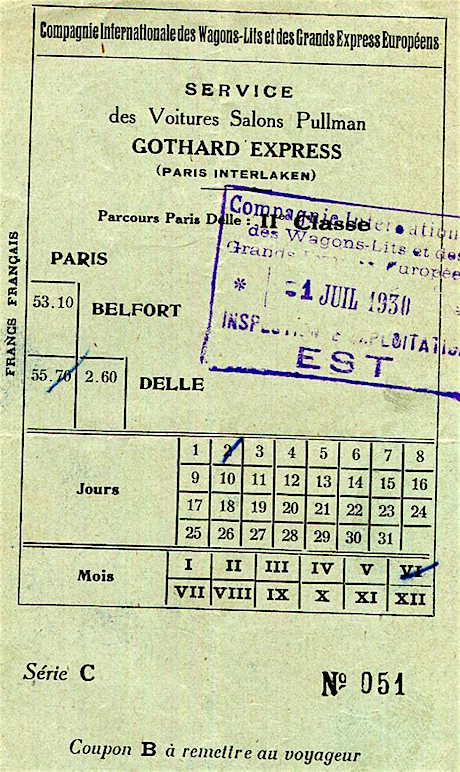 CIWL Gothard Express Ticket Paris To Basel 1930