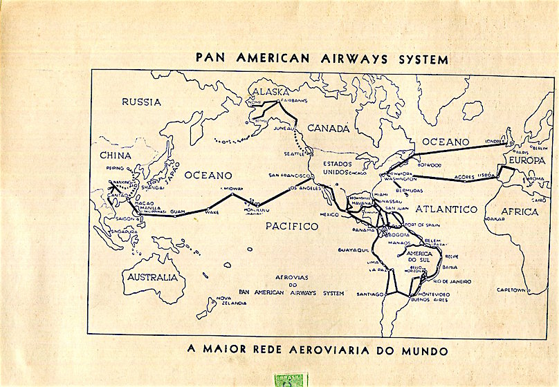 Pan Am Airlines Brazil Map 1940 Front