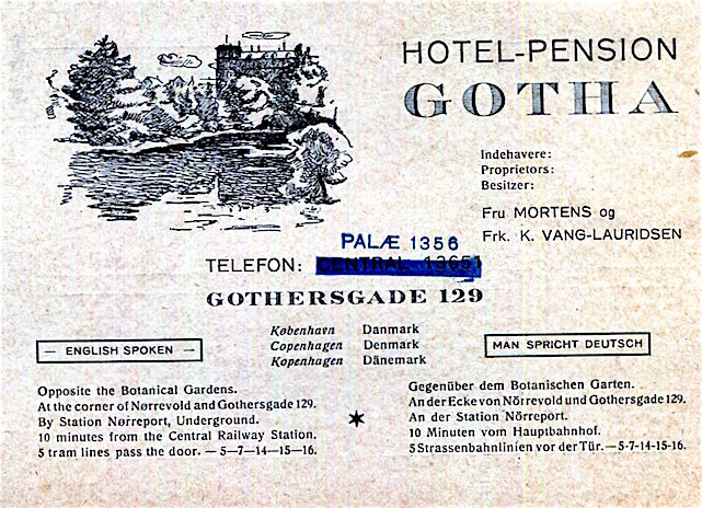 Denmark Copenhagen Hotel Pension Gotha Business Card 1938