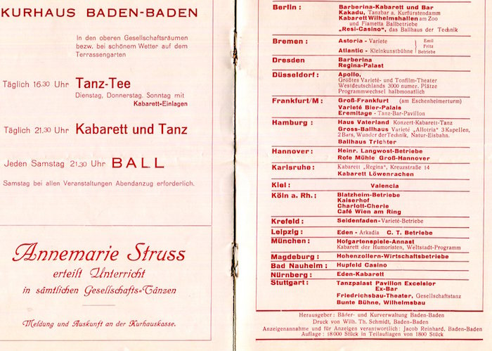 Germany Baden Baden Entertainment Kabarett Im Kurhaus Program 1938-2 Inside 2