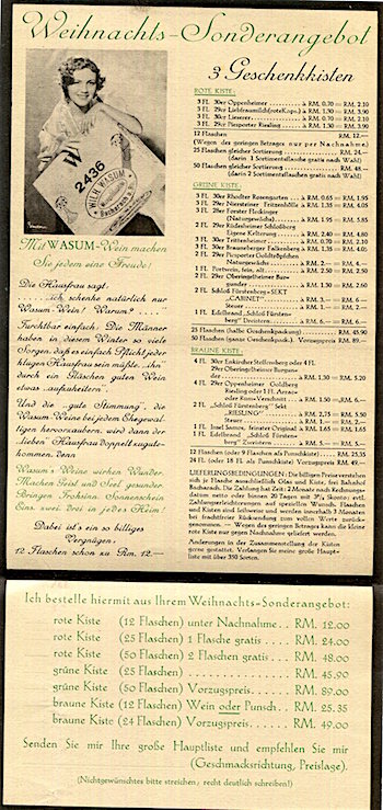 Germany Commerce Bacharach Am Rhein Wilhelm Wasum Wine Price List 1938