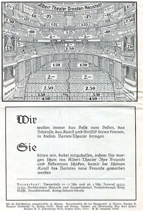 Germany Entertainment Dresden Albert Theater Program 1936-1 Back