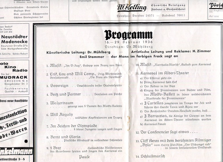 Germany Entertainment Dresden Albert Theater Program 1936-2 Front