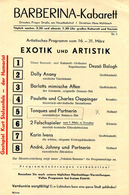 Germany Entertainment Dresden Barberina Kabarett Program 1942