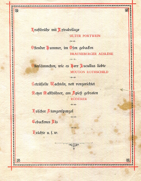 Germany Dresden Europäischer Hof Menu 1896 Inside