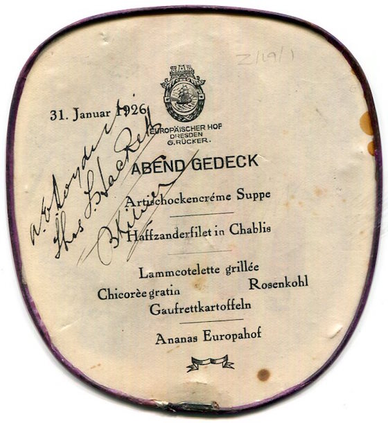 Germany Dresden Europäischer Hof Menu Fan 1926 Front