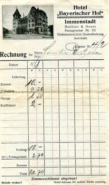 Germany Immenstadt Hotel Bayerischer Hof Receipt 1922