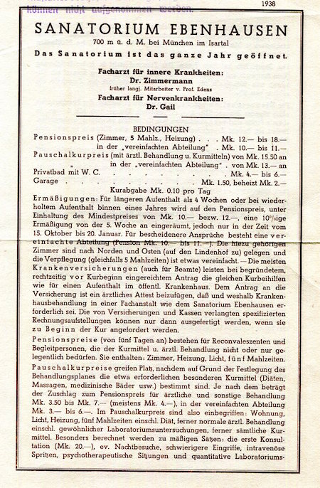 Germany Isartal Sanatorium Ebenhausen Leaflet 1938