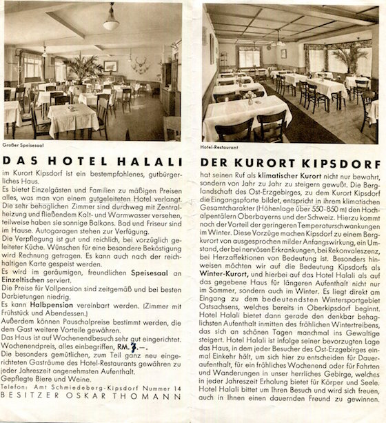 Germany Kipsdorf Hotel Halali Brochure 1938 Inside