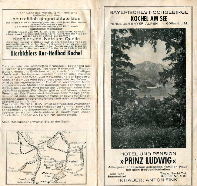 Germany Kochel Hotel & Pension Prinz Ludwig Brochure 1932 Front