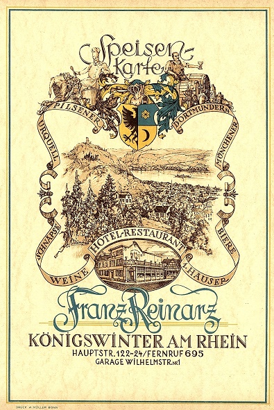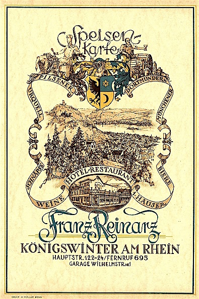 Germany Konigswinter am Rhein Hotel Rest Franz Reinanz Menu 1930 Front