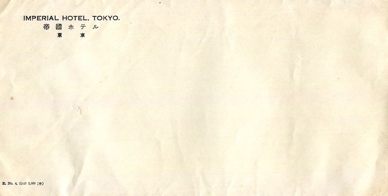 Japan Tokyo Envelope Imperial Hotel Frank Lloyd Wright Architect 1935