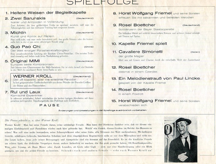 Germany KDF Entertainment Berlin Werner Kroll Program 1942 Inside