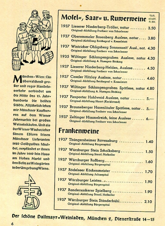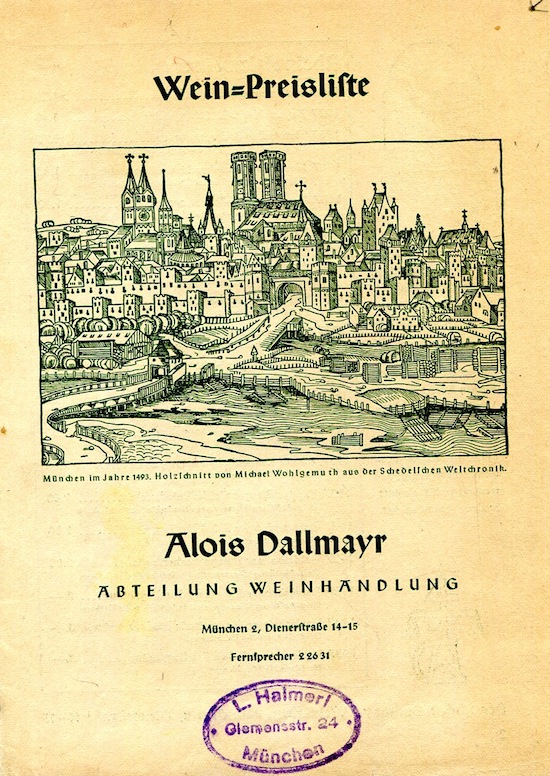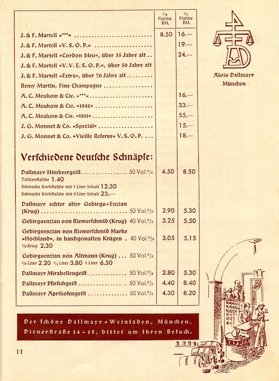 Germany Munich Commerce Alois Dallmayr Liquor Price List 1938 Front