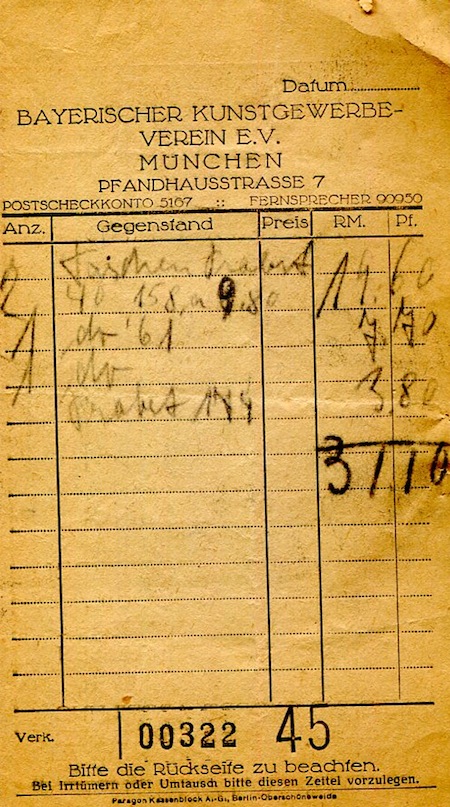 Germany Munich Commerce Bavarian Arts & Crafts Association Receipt 1929