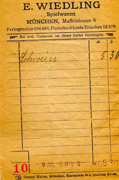 Germany Munich Commerce E. Wiedling Games Receipt 1929