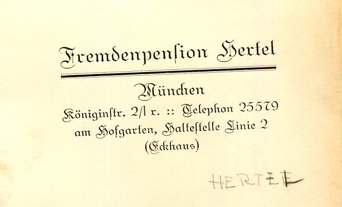 Germany Munich Commerce Fremdenpension Hertel Business Card 1929