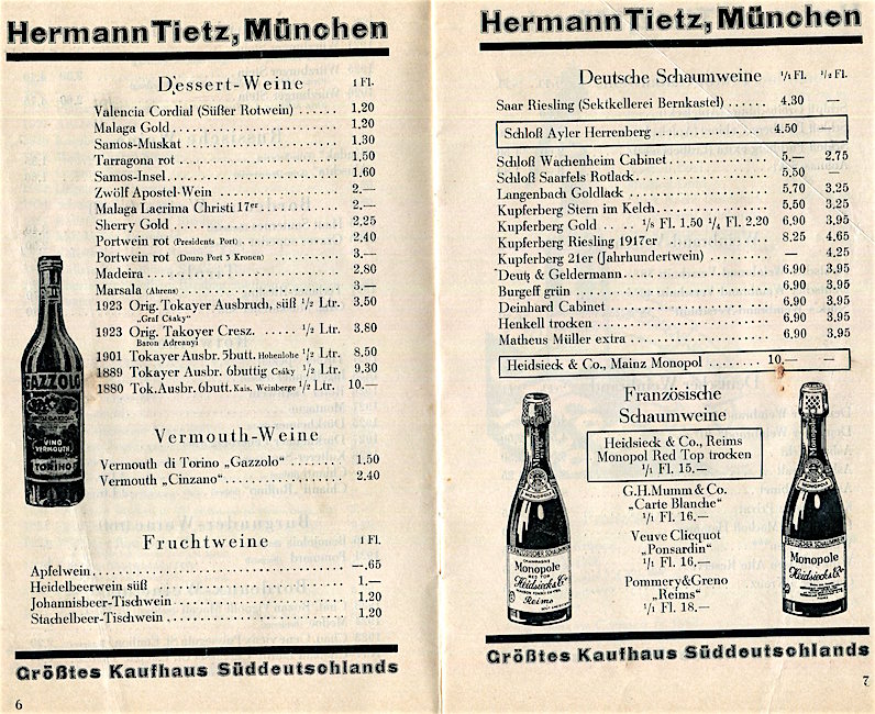 Germany Munich Commerce Hermann Tietz Brochure Wines Liquors 1930 Inside 2