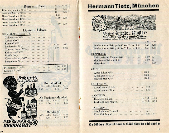 Germany Munich Commerce Hermann Tietz Brochure Wines Liquors 1930 Front