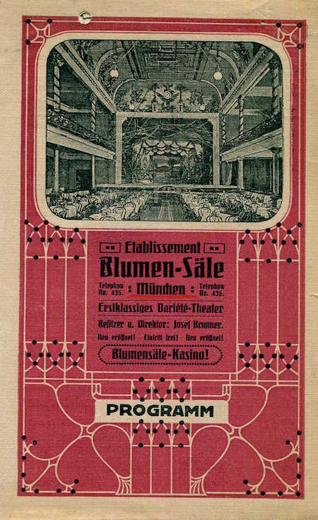 Germany Entertainment Munich Blumen Säle Program 1912 Front