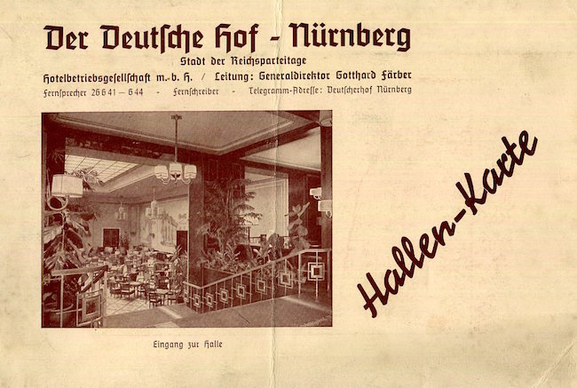 Germany Nürnberg Der Deutsche Hof Hotel Menu 1941 Front