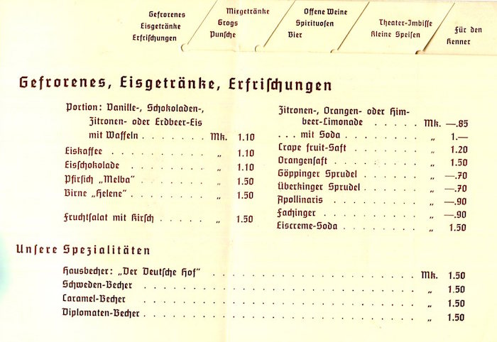 Germany Nürnberg Der Deutsche Hof Hotel Menu 1941 Inside 1