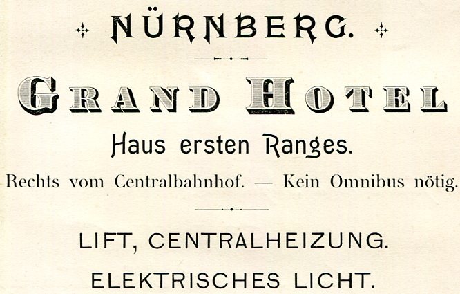 Germany Nürnberg Grand Hotel Business Card 1899