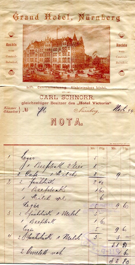Germany Nürnberg Grand Hotel Receipt 1899