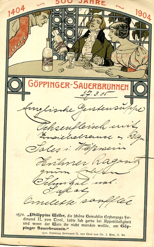 Germany Bad Teinach Göppinger-Sauerbrunnen Restaurant Menu 1905