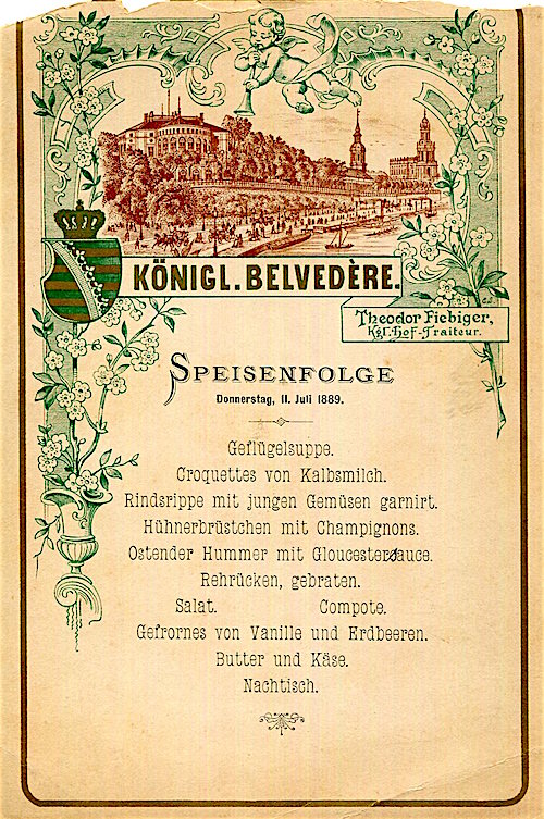 Germany Dresden Belvedere Royal Palace Menu 1889