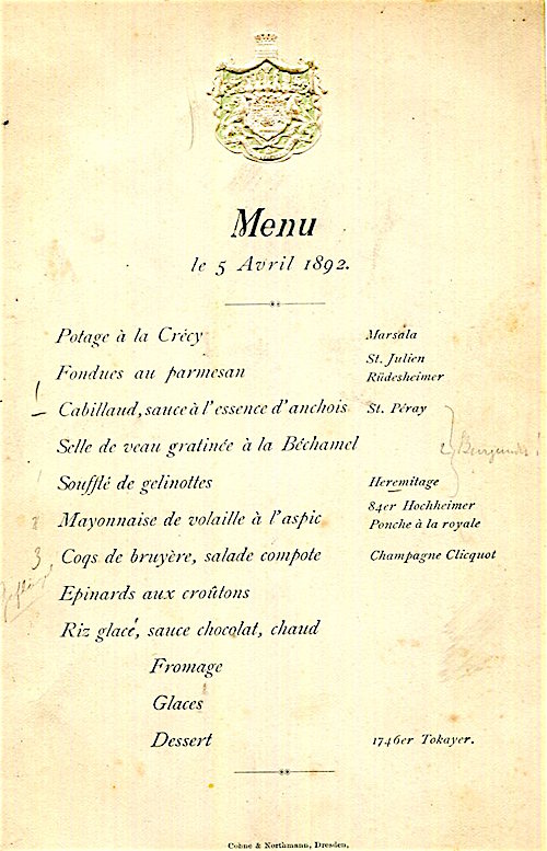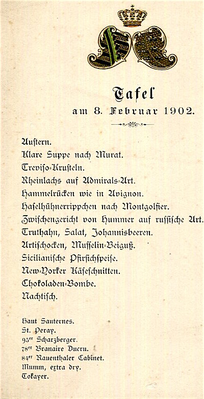 Germany Dresden Saxon Court Roayl Dinner Menu 1902
