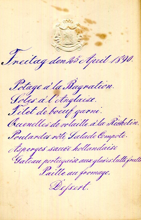 Germany Ebersdorf Royal Special Occasion Menu 1890-1