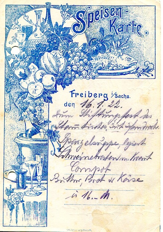 Germany Freiberg Special Occasion Menu 1922
