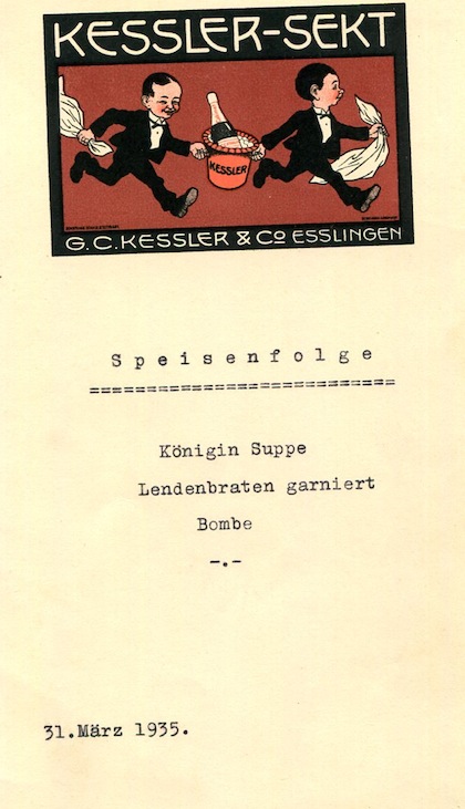 Germany Kessler Sekt Special Occasion Menu 1935