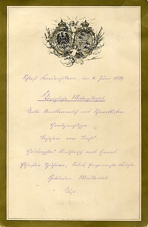 Germany Königsberg Friedrichskron Castle Royal Menu 1889
