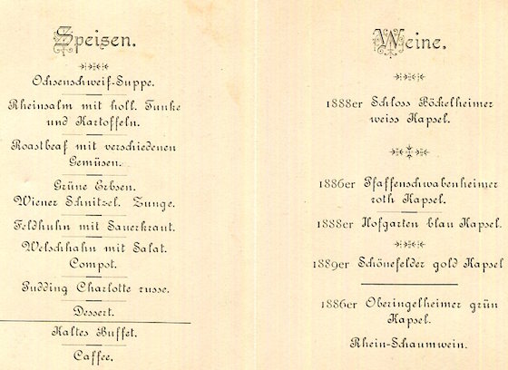 Germany Hochheim am Main Special Occasion Menu 1896