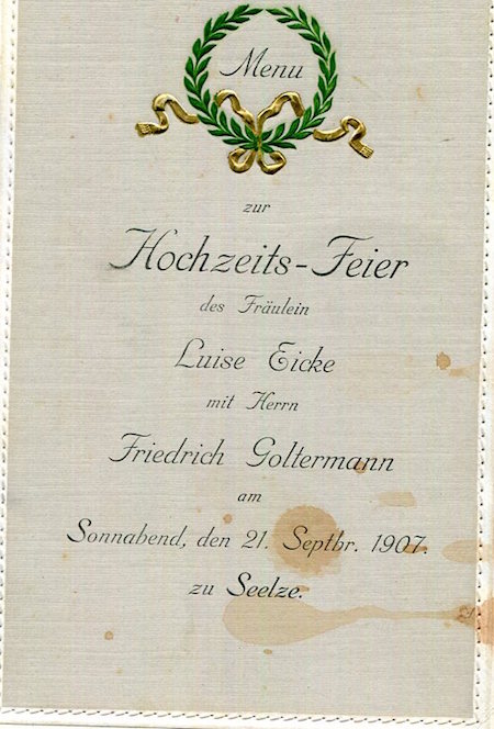 Germany Seelze Special Occasion Menu 1902