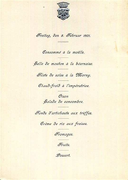 Germany Special Occasion Menu 1901