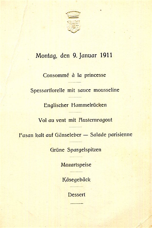 Germany Special Occasion Menu 1911