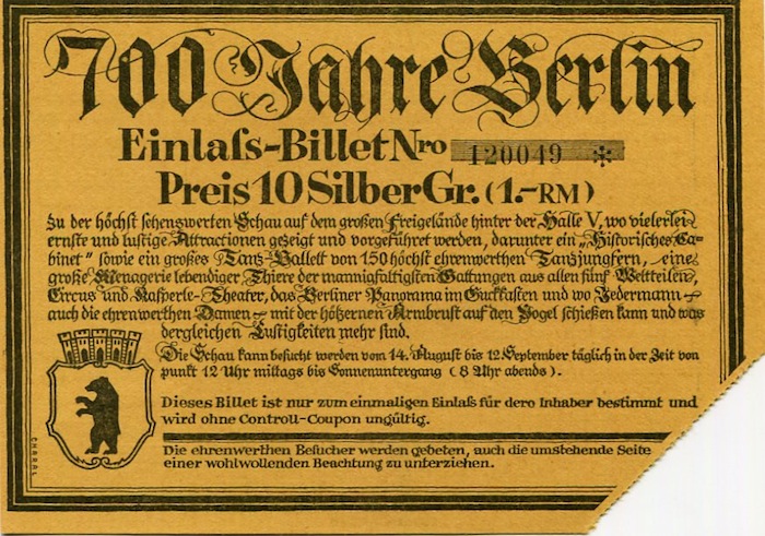 Germany Berlin Commerce 700 Years Anniversary Of Berlin Ticket 1937