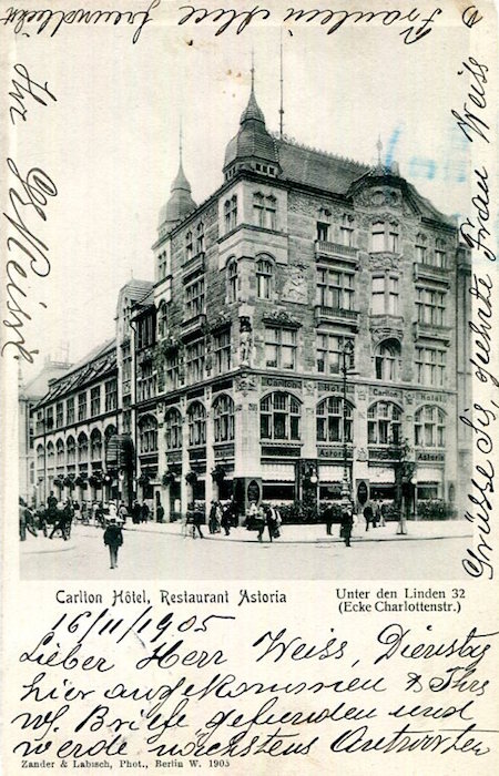 Germany Berlin Carlton Hotel Restaurant Astoria Postcard 1905