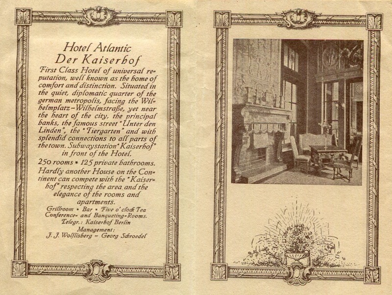 Germany Berlin Hotel Atlantic Der Kaiserhof Brochure 1930 Inside 3