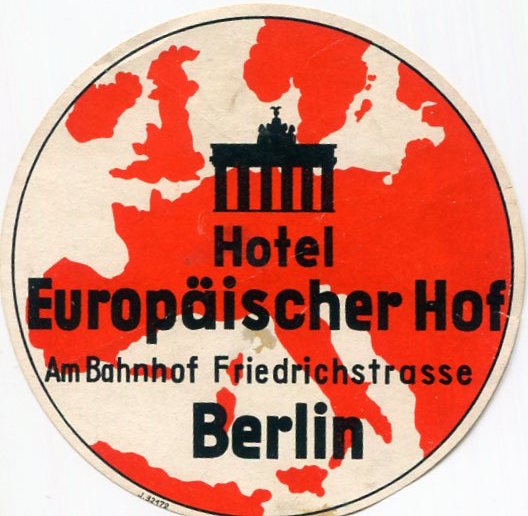 Germany Berlin Hotel Europäischer Hof Luggage Label 1932