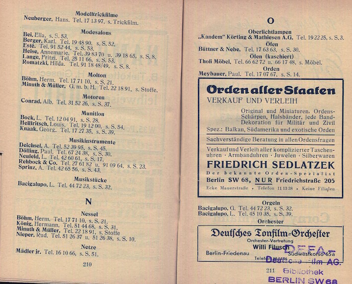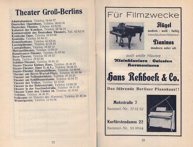 Germany Berlin Cinema Address Book 1939 Inside 4